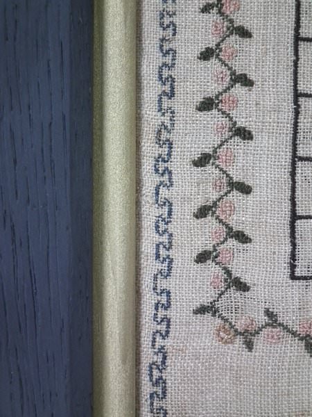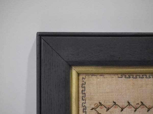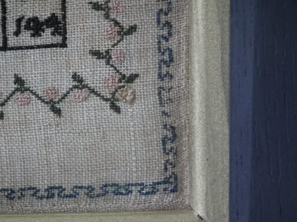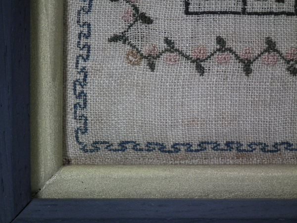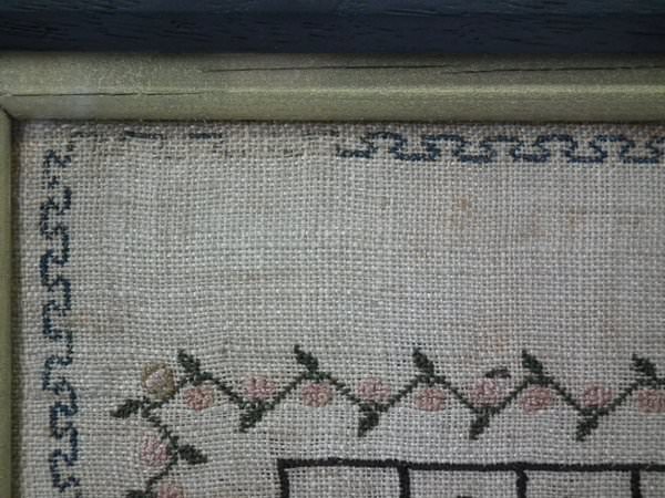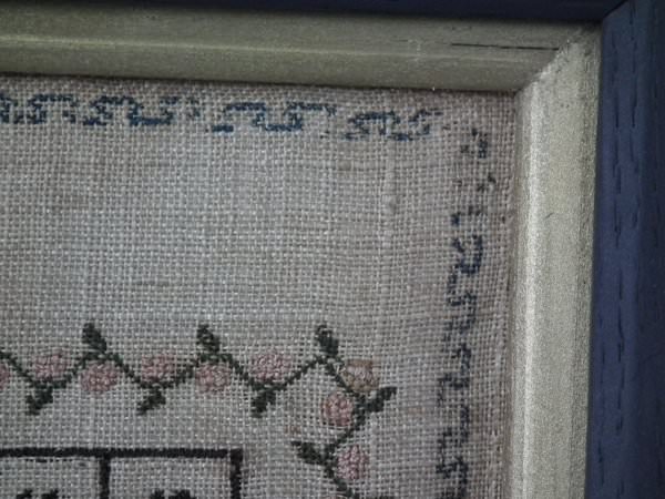 The sampler is worked in silk on canvas ground, in a variety of stitches.