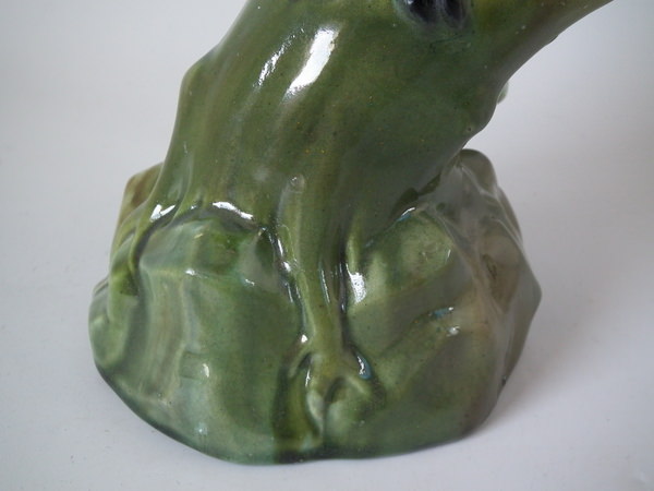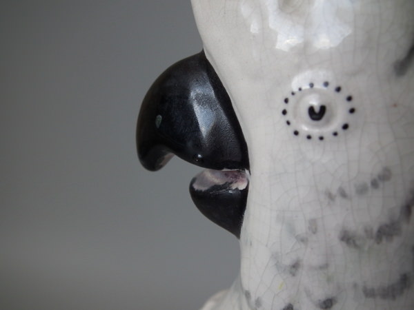 CONDITION: Fair. KILN EFFECTS: kiln detritus caught in the glaze to the beak;