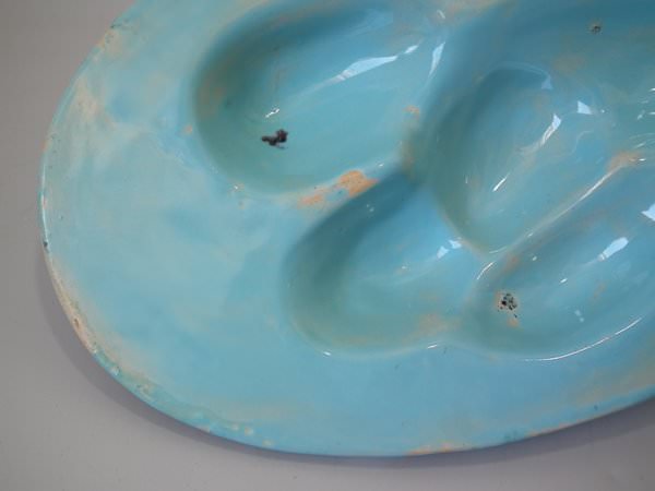 KILN EFFECTS: flecks of stray coloured glaze to the interior.