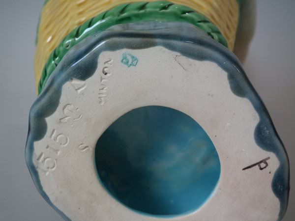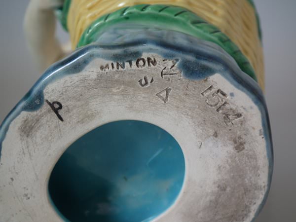 The piece bears maker's marks for the Minton pottery. Bears a pattern number, '1514/1515'. Marks include a factory specific date cipher for the year 1859.