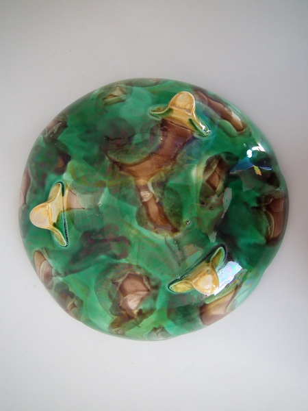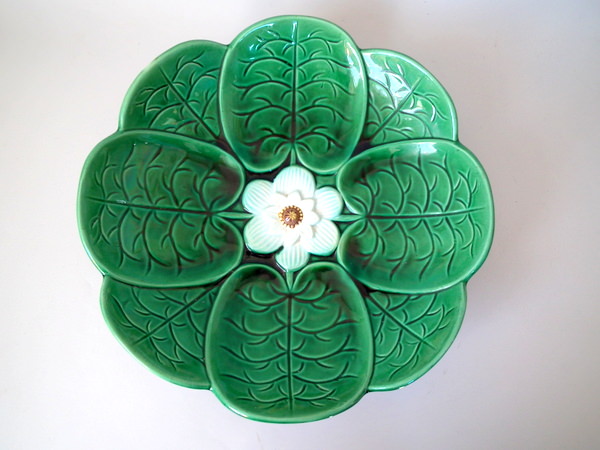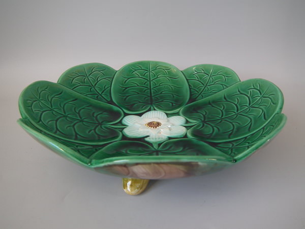 Large Majolica lily pad footed bowl