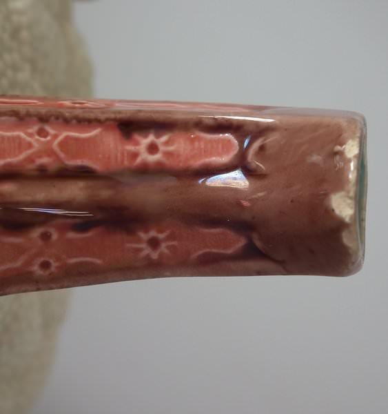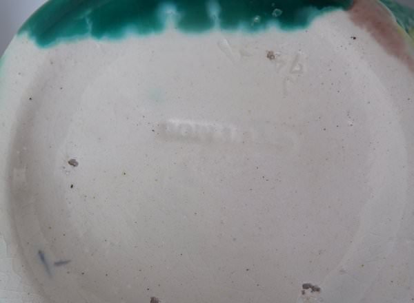 Colouration: cream, green, pink, are predominant. The piece bears maker's marks for the Copeland pottery.