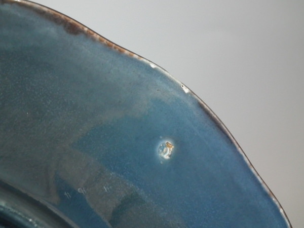 KILN EFFECTS: glaze run to the green and brown glaze;