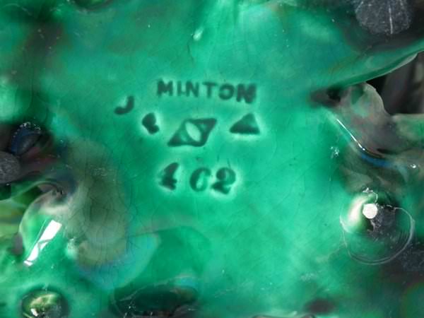 The piece bears maker's marks for the Minton pottery. Bears a pattern number, '462'. Marks include a factory specific date cipher for the year 1863.