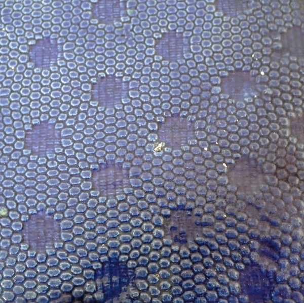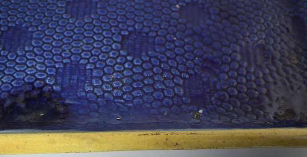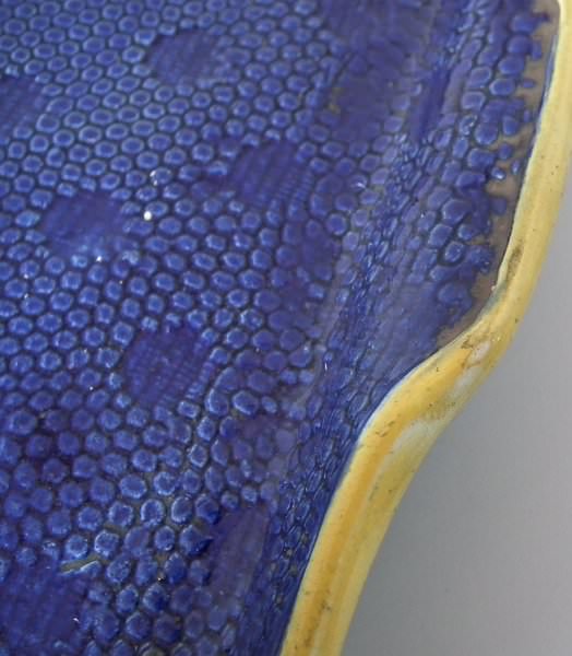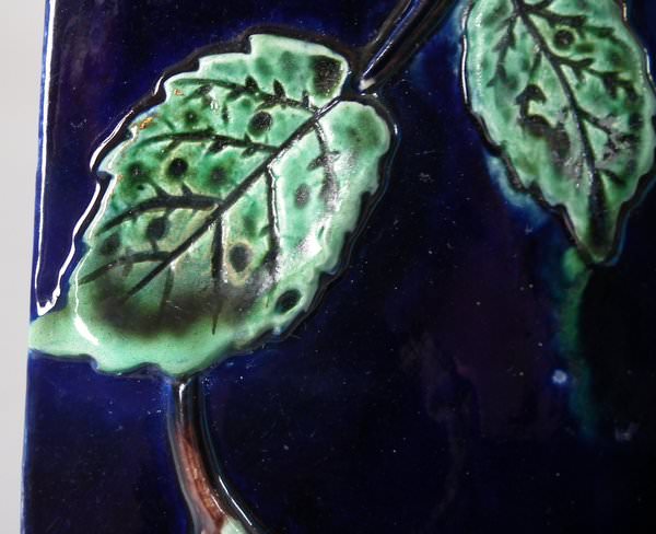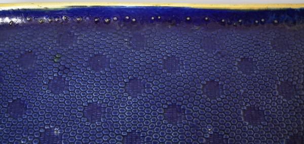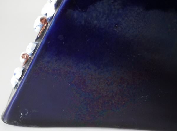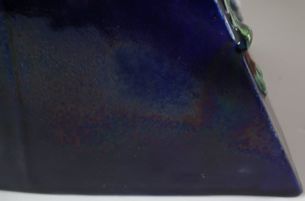 KILN EFFECT: glaze run to the cobalt blue and green glazes.