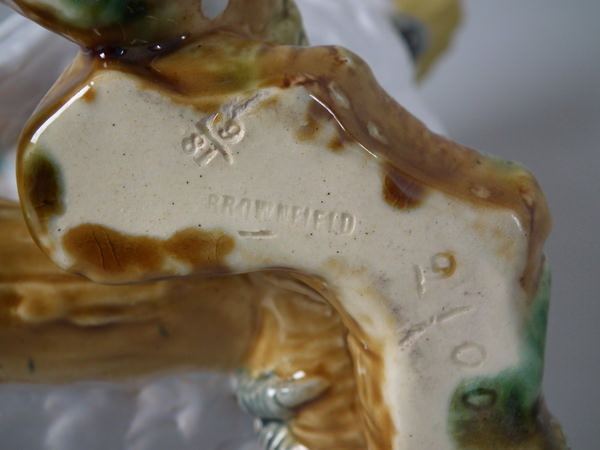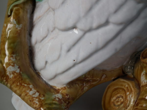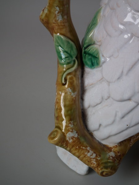 CONDITION: Good. KILN EFFECTS: small firing pits to the wings and chest; flecks of stray white glaze to the branch.