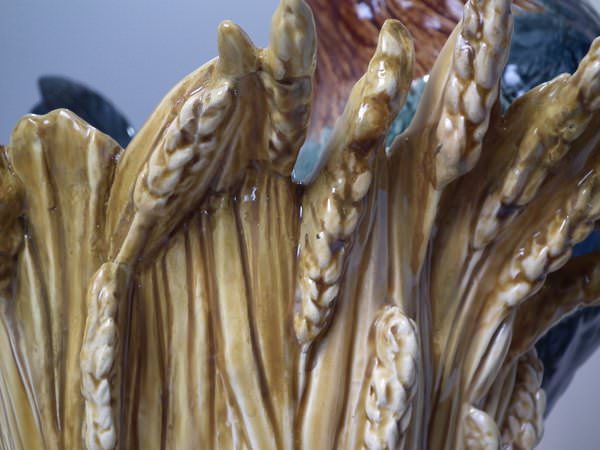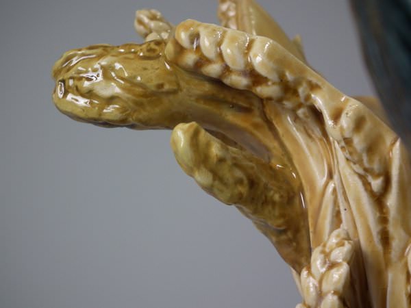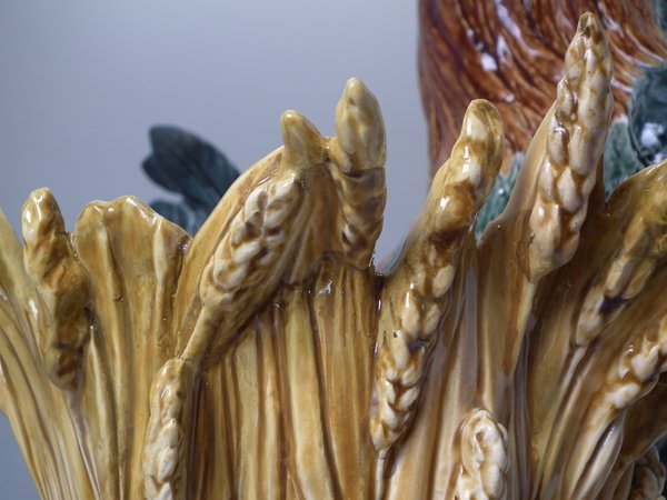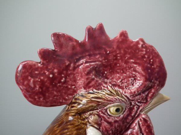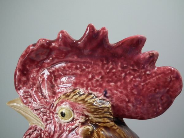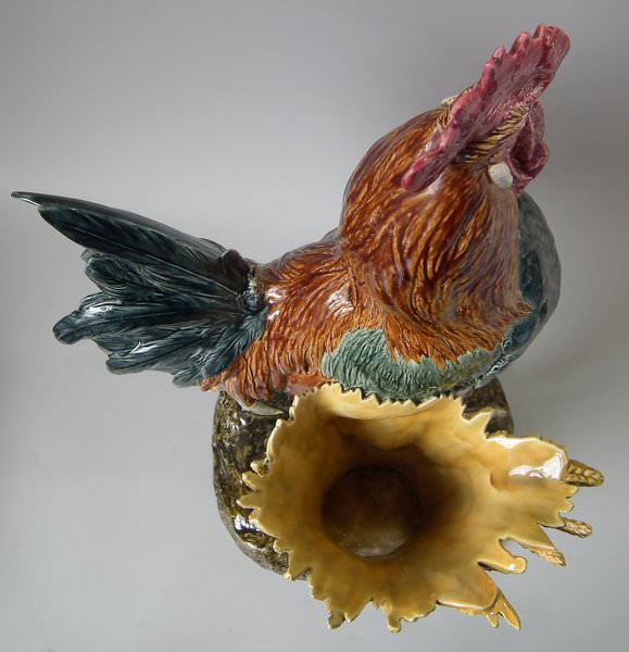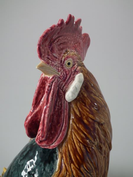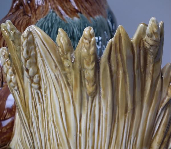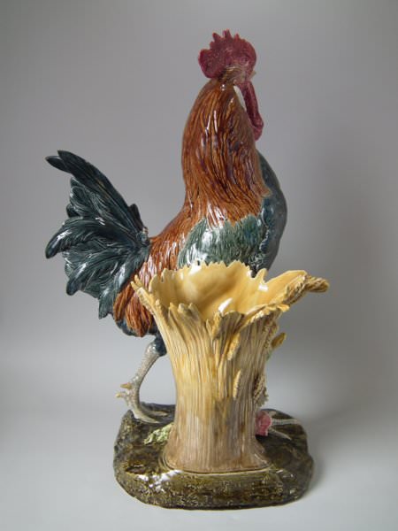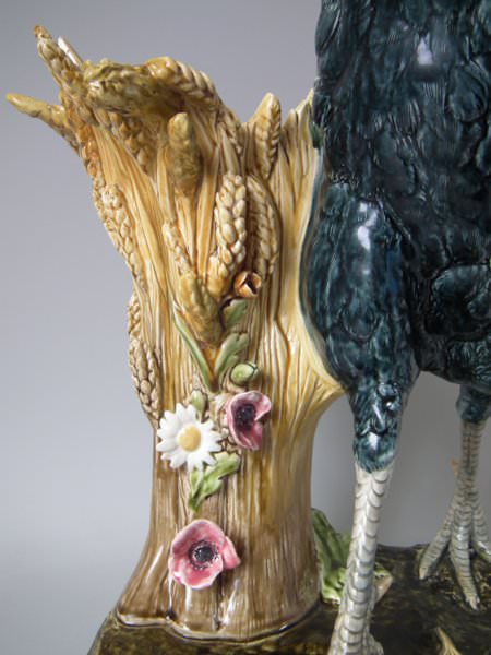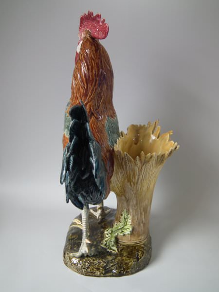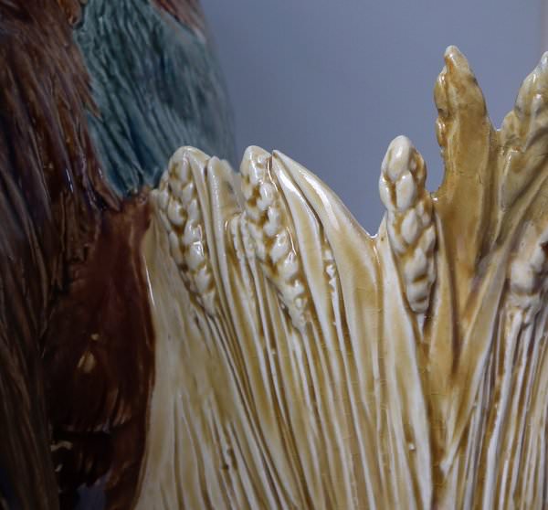 Choisy Majolica stick/umbrella stand or vase which features a rooster/cockerel standing next to some wheat.