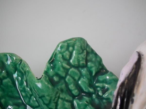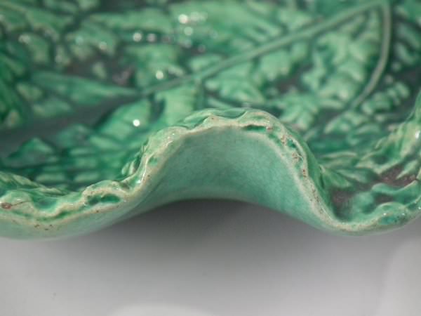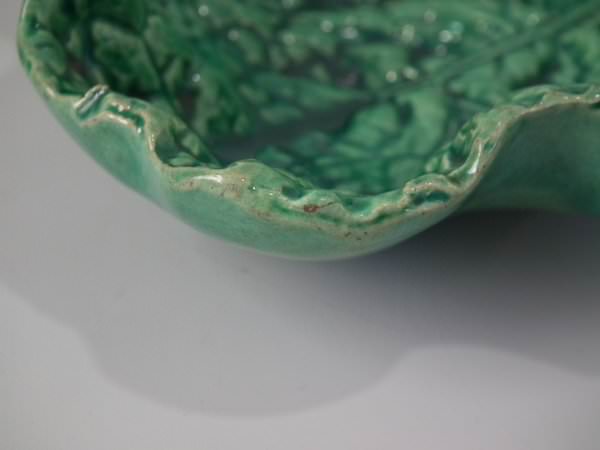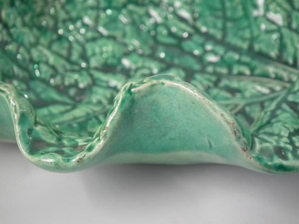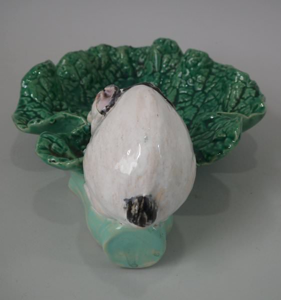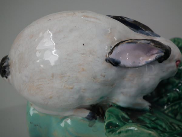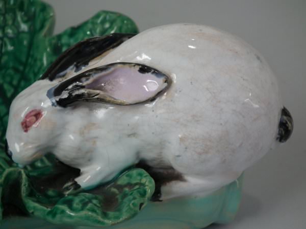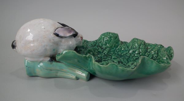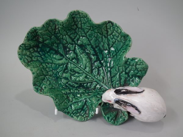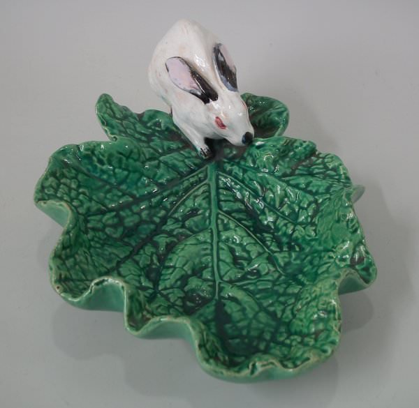 Minton Majolica dish which features a rabbit eating a cabbage leaf.