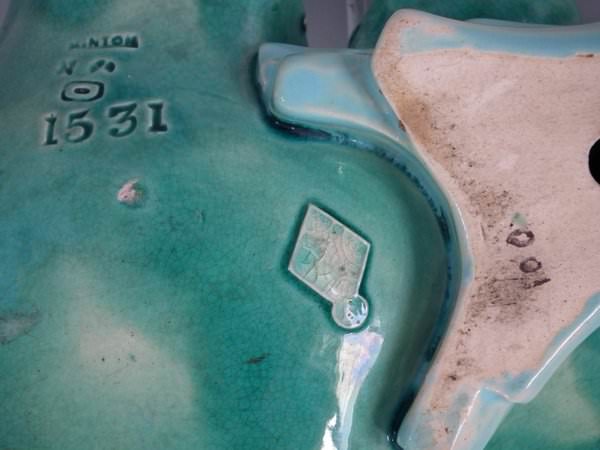 The piece bears maker's marks for the Minton pottery. Bears a pattern number, '1531'. Marks include a factory specific date cipher for the year 1869.