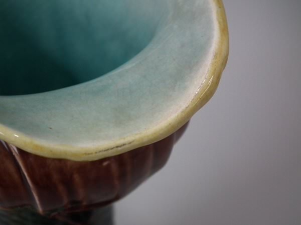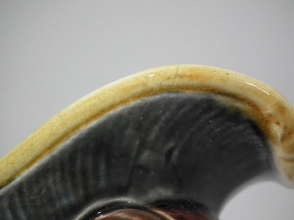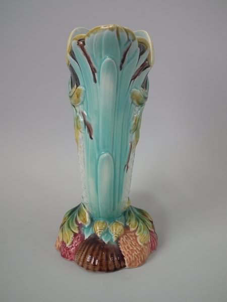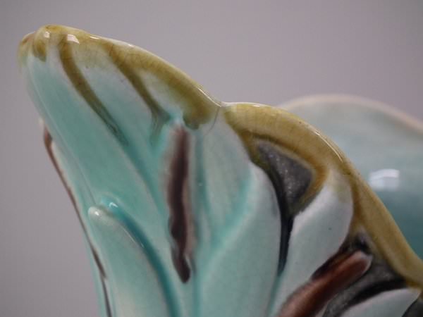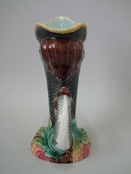 Gustafsberg Majolica jug/pitcher which features open mouthed fish on a shell and seaweed base.