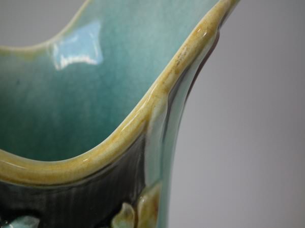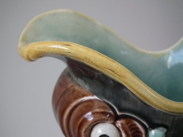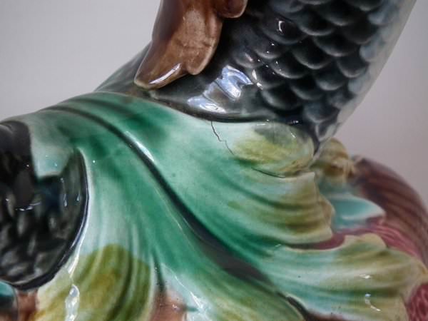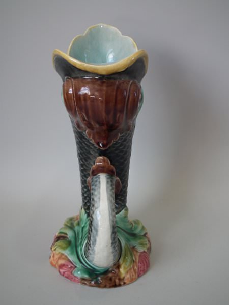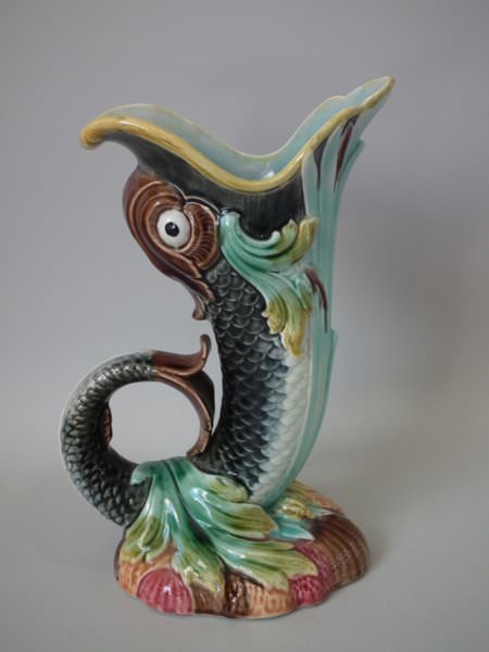Gustafsberg Majolica jug/pitcher which features an open-mouthed fish on a shell and seaweed base.