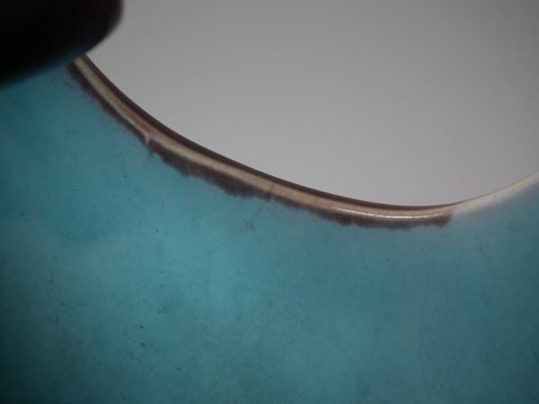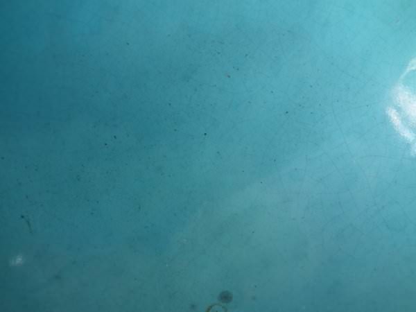 two specks of kiln detritus caught in the glaze to the top of the base.