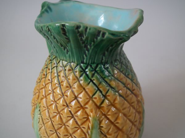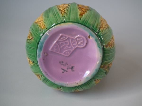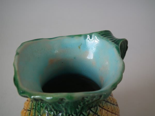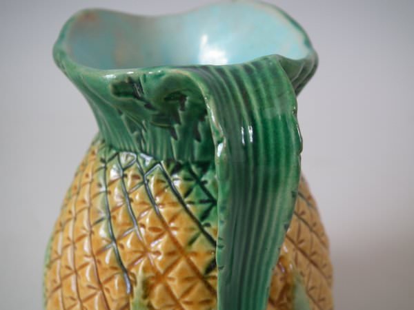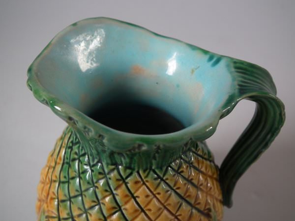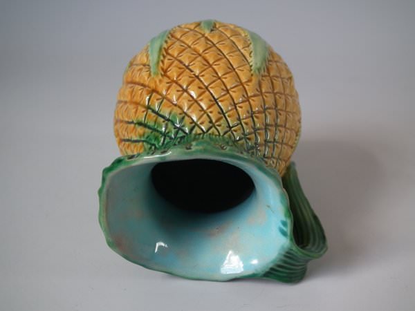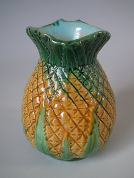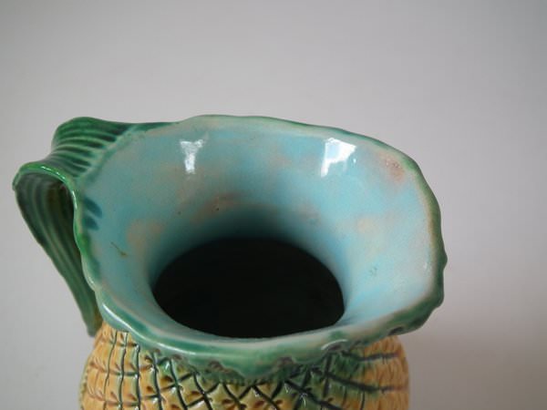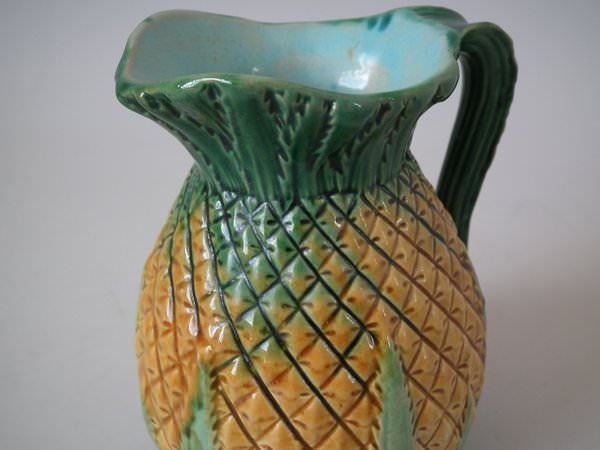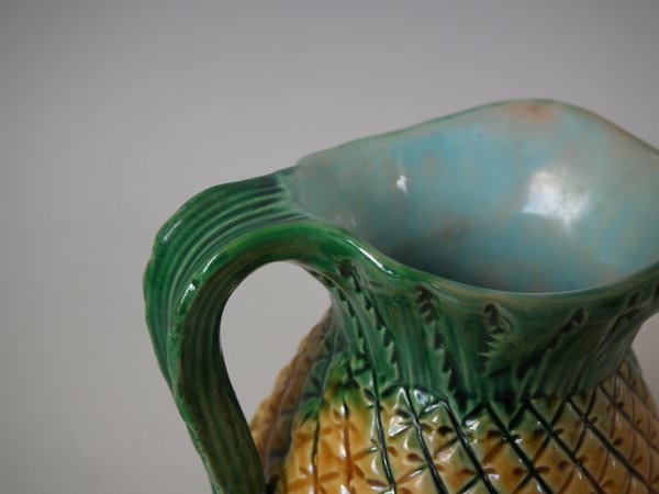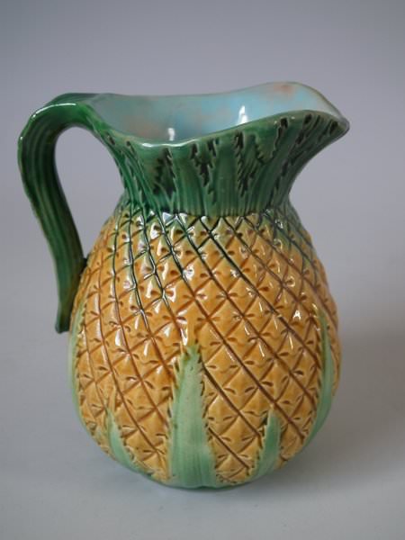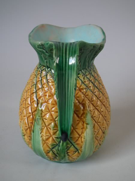 Victorian, circa 1870. 4.1ins high, 3.4ins wide, 3.1ins depth. George Jones Majolica jug/pitcher which features a pineapple.