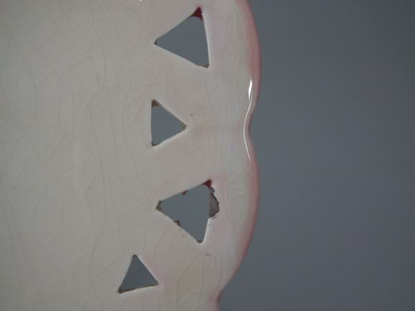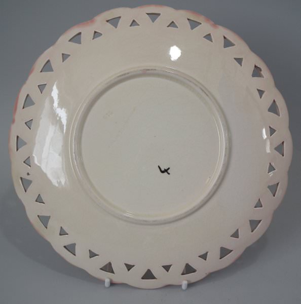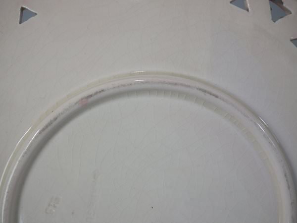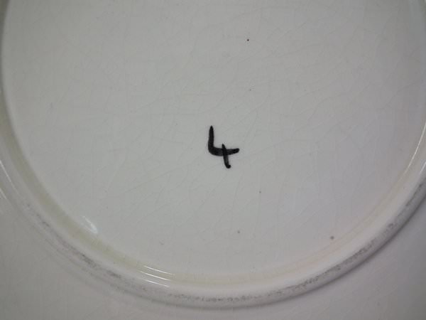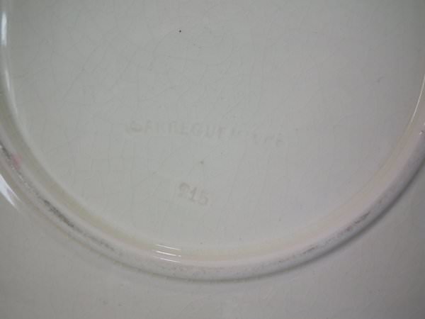 The piece bears maker's marks for the Sarreguemines pottery. Bears a pattern number, '215'.
