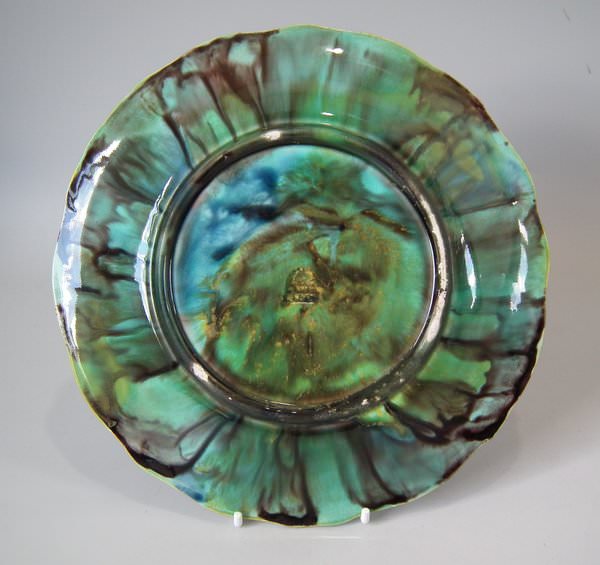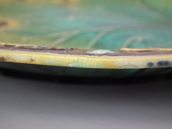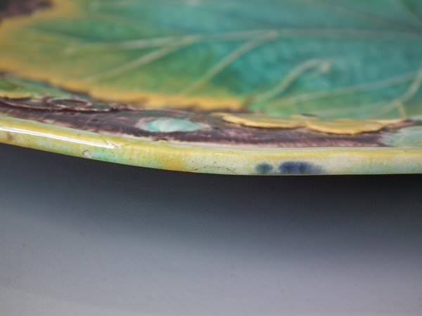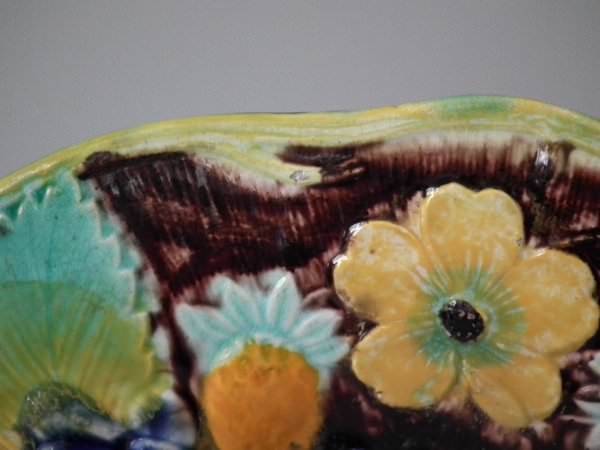 Alcock Majolica plate which features strawberries, leaves, grapes and blossoms.