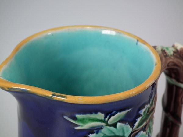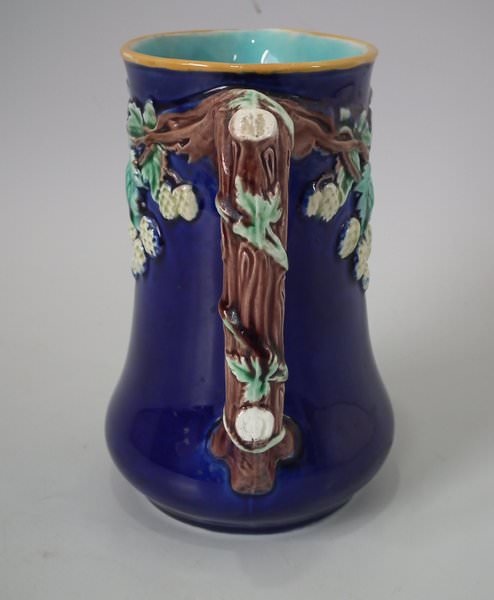 Wedgwood Majolica jug/pitcher which features fruiting hops and a branch handle.
