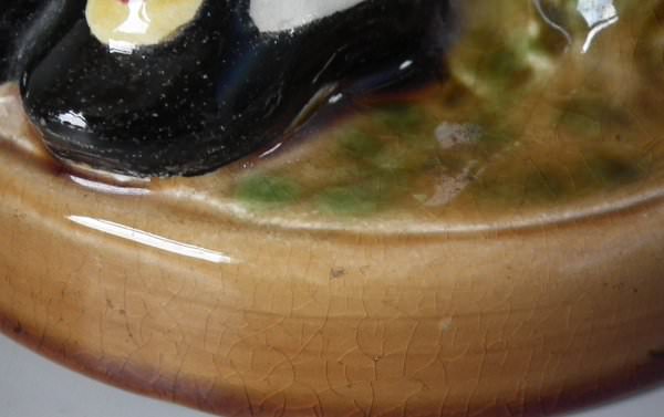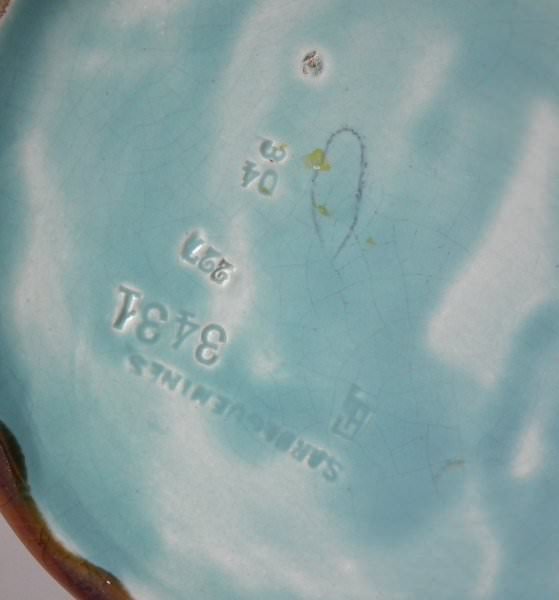 The piece bears maker's marks for the Sarreguemines pottery. Bears a pattern number, '3431'.