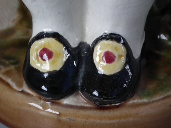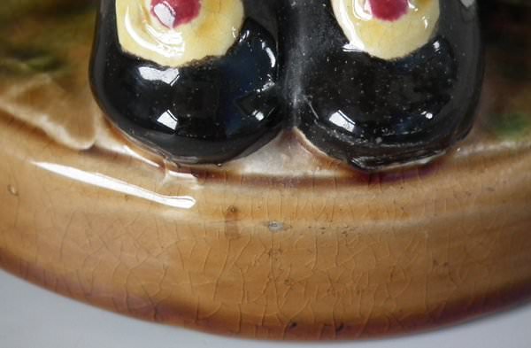 KILN EFFECTS: glaze pops to his shoes;