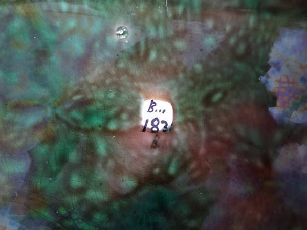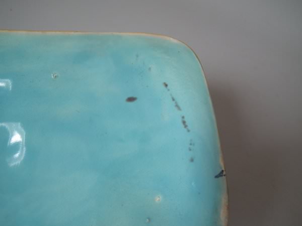 KILN EFFECTS: flecks of stray coloured glaze to the underside.