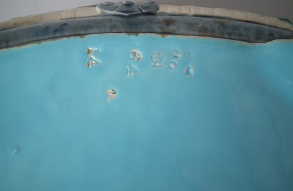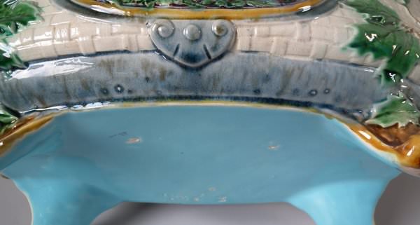 The piece bears maker's marks for the Minton pottery. Bears a pattern number, '964'. Marks include a factory specific date cipher for the year 1871.