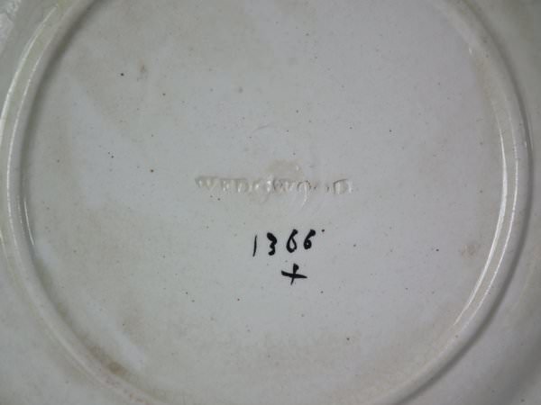 The piece bears maker's marks for the Wedgwood pottery. Bears a pattern number, '1366'.