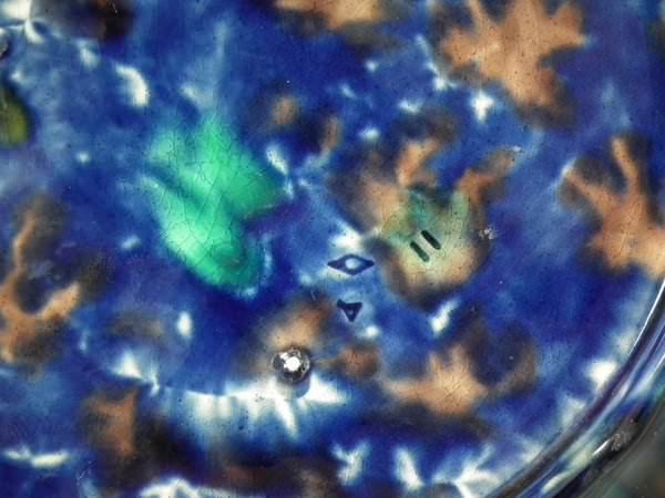 KILN EFFECTS: a few specks of kiln detritus caught in the glaze to the ground.