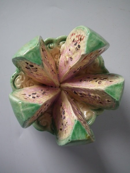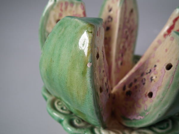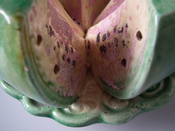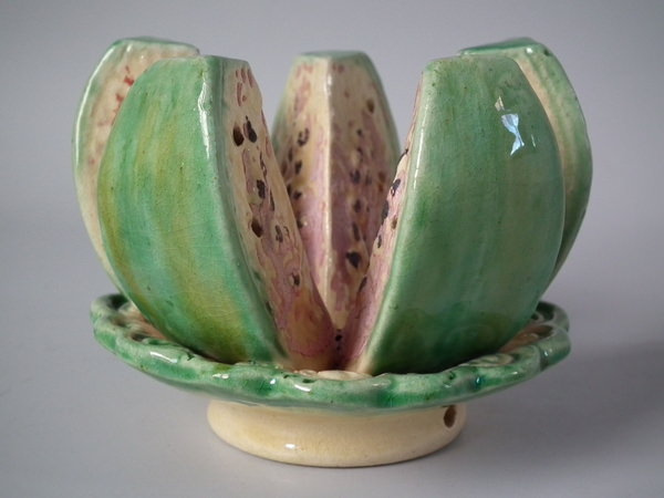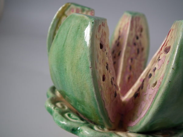 Majolica Palissy melon toothpick holder