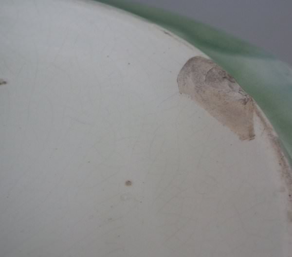 KILN EFFECTS: a couple of shrinkage cracks to the foot rim, one with an associated flake;