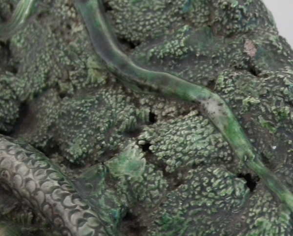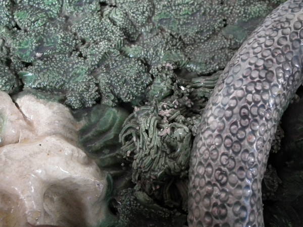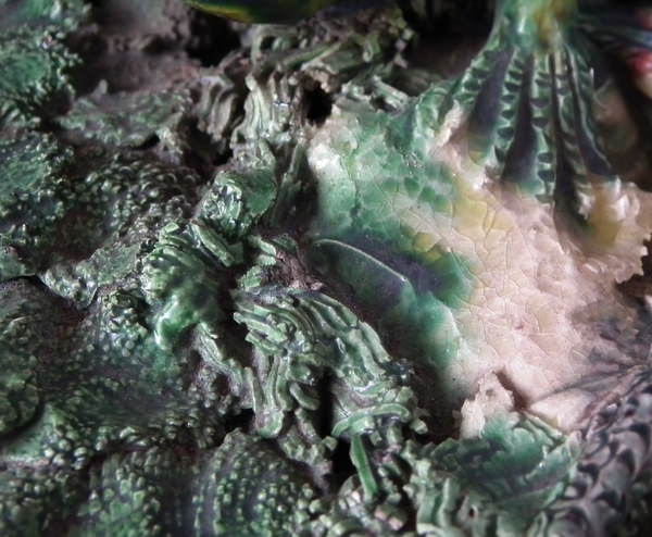 Large Rare Caldas Majolica Palissy bird and snake wall charger