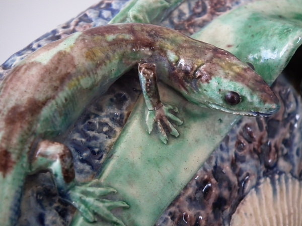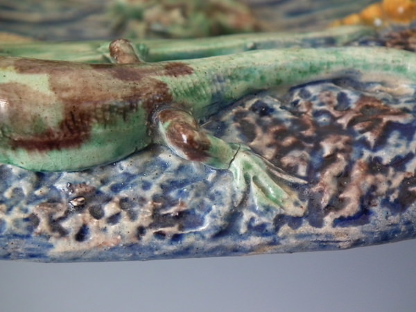 Large Barbizet Majolica Palissy fish, reptile & insect platter