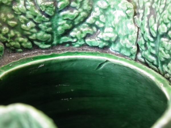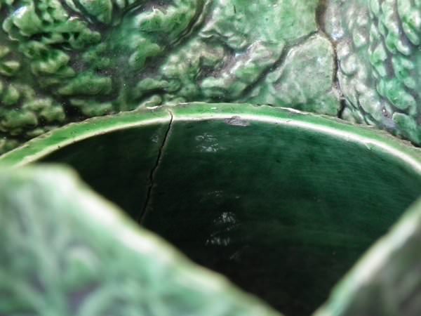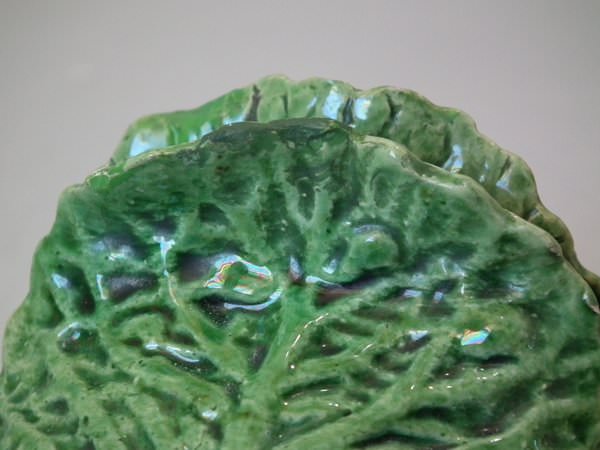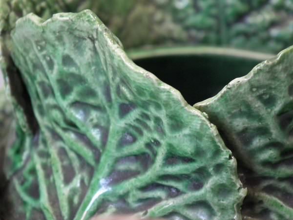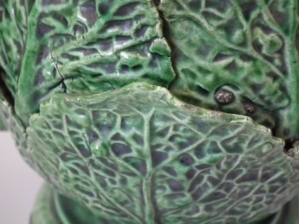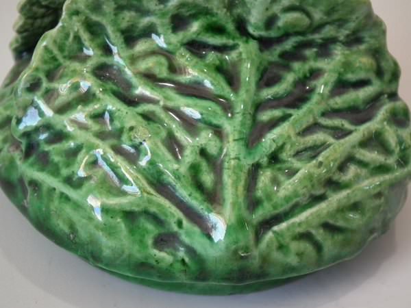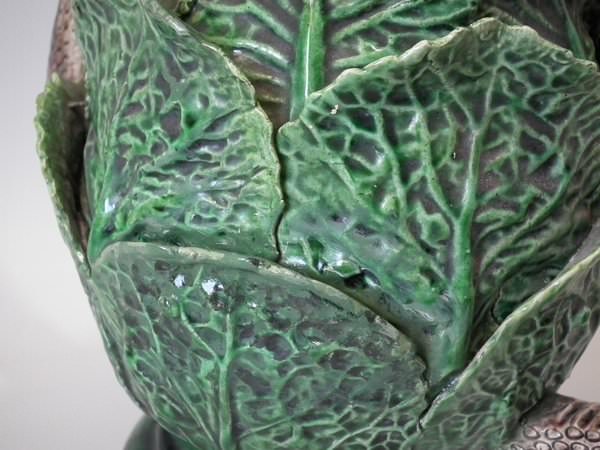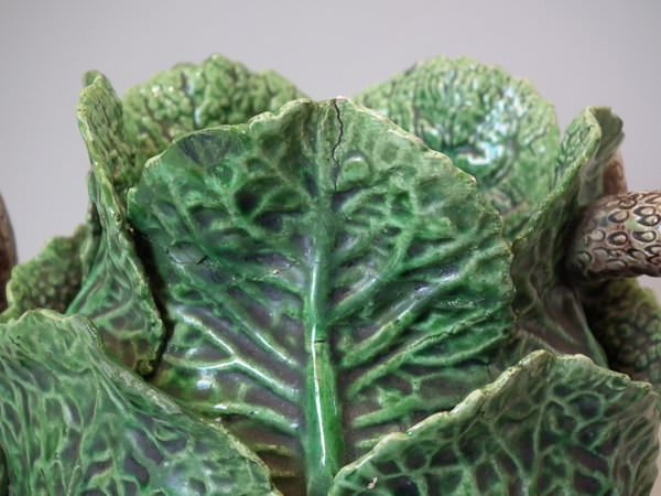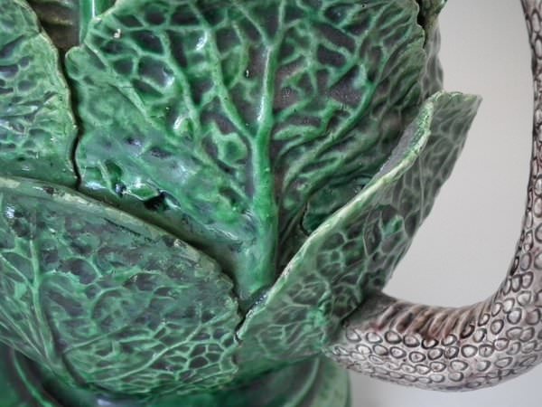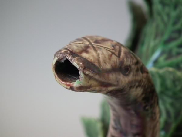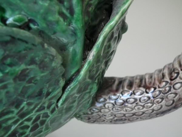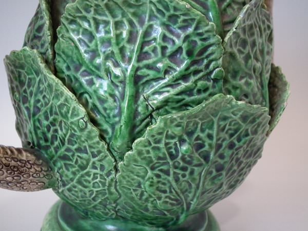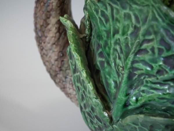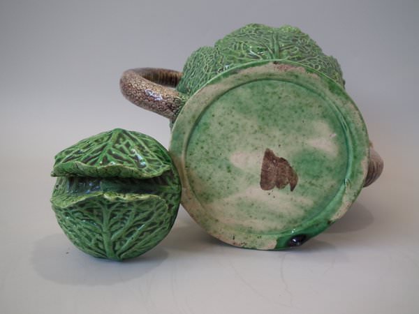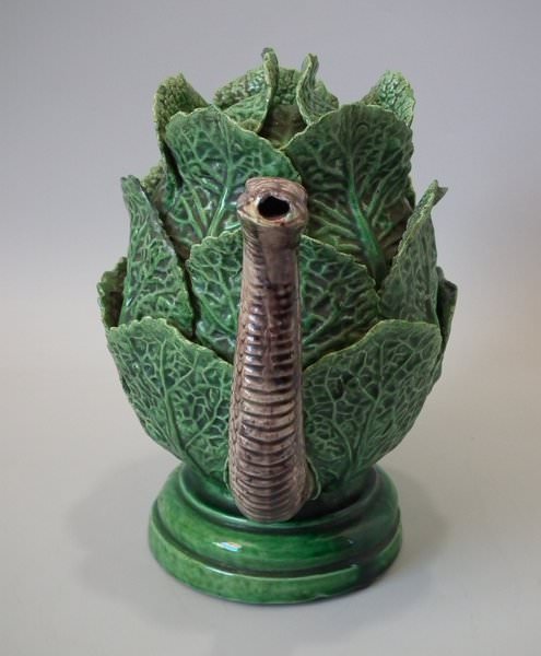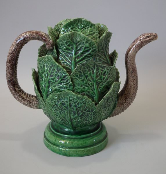 Portuguese Palissy Majolica teapot which features cabbage leaves forming the teapot and a snake forming the handle and spout.