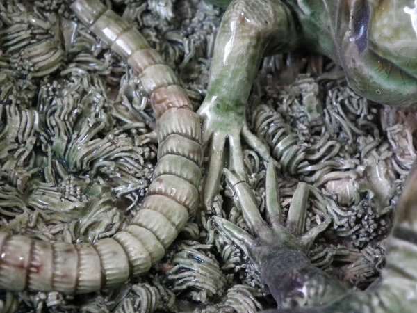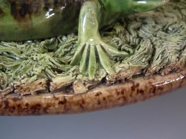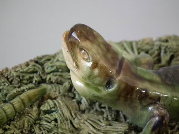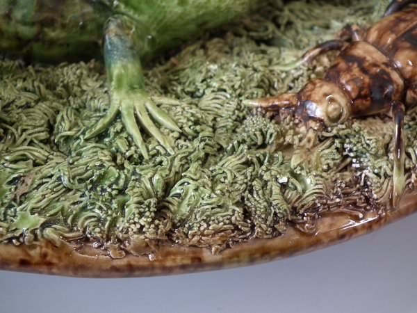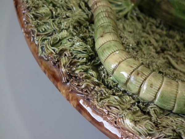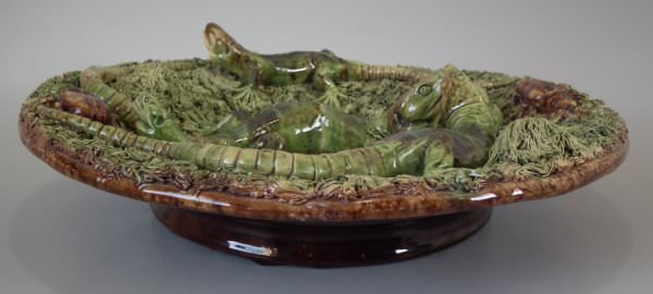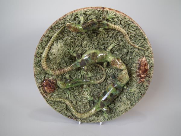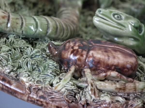 Mafra Portuguese Palissy Majolica wall plate which features lizards and beetles.