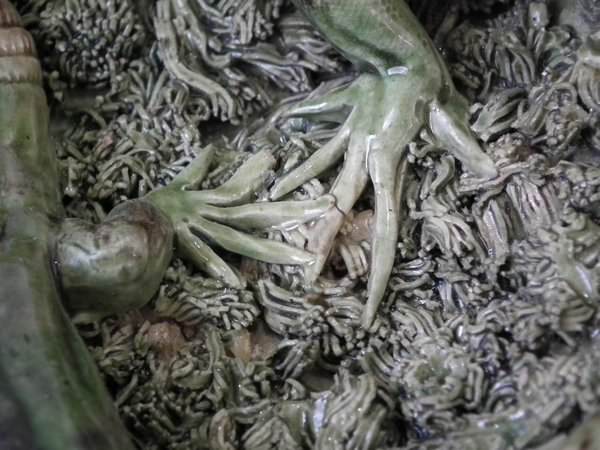 KILN EFFECTS: shrinkage cracks to toes and beetle's antennae.