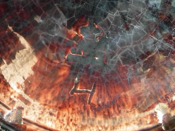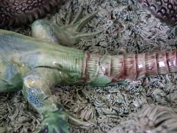 KILN EFFECTS: shrinkage crack to the lizard's tail;