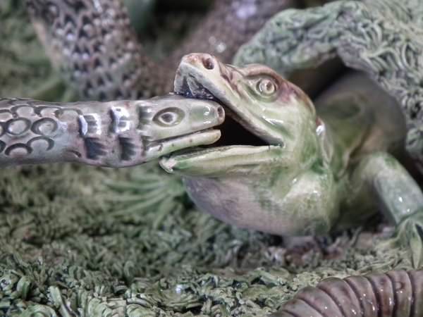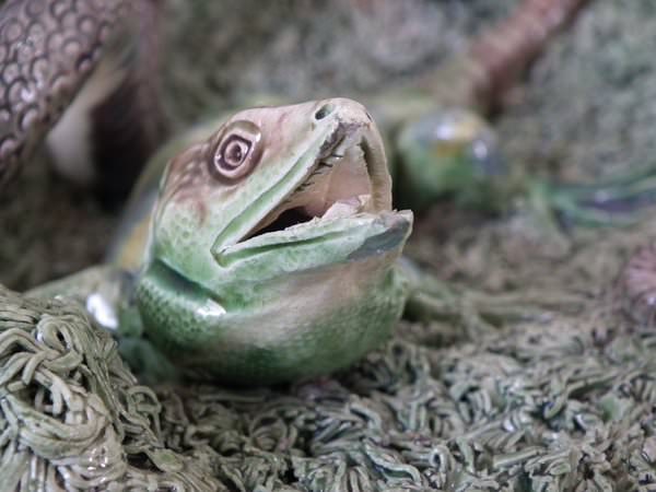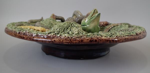 Mafra Majolica wall plate which features lizards, and snake and insects.
