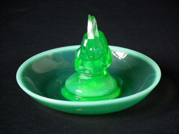 René Lalique Green opalescent Glass 'Lapin ( Rabbit)' Cendrier ashtray