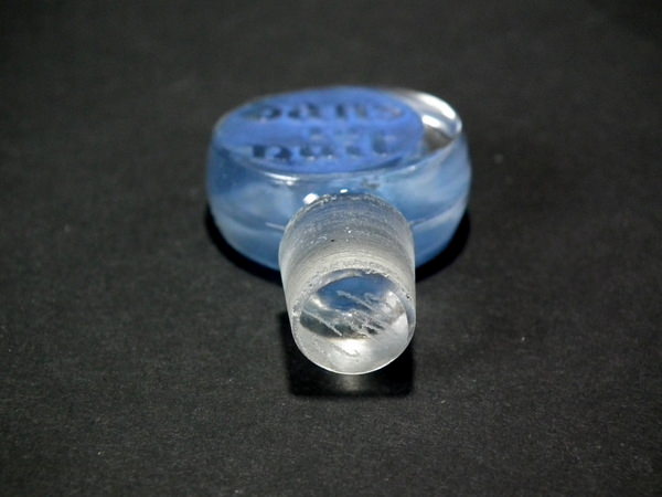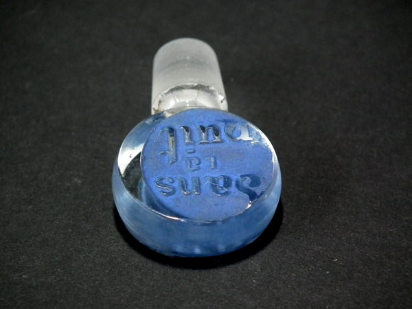 René Lalique Clear with blue staining Glass 'Dans le nuit' pefume . Moulded makers mark, 'R Lalique'. Book reference: Marcilhac Worth 3.