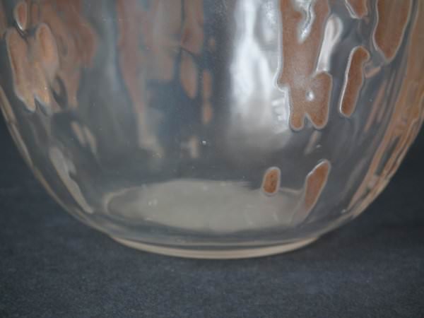 Introduced in 1912. Height: 15.5cm (6.1ins). Width: 11cm (4.33ins). Depth: 11cm (4.33ins). Renè Lalique Sepia stained Glass 'Fontaines' Lidded Vase.