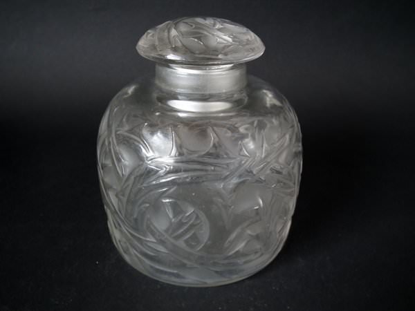Introduced in 1920. Height: 11cm (4.33ins). Width: 9.5cm (3.74ins). Depth: 9.5cm (3.74ins).. Rene Lalique Clear and Frosted Glass 'Epines no2' Flacon (Perfume bottle).