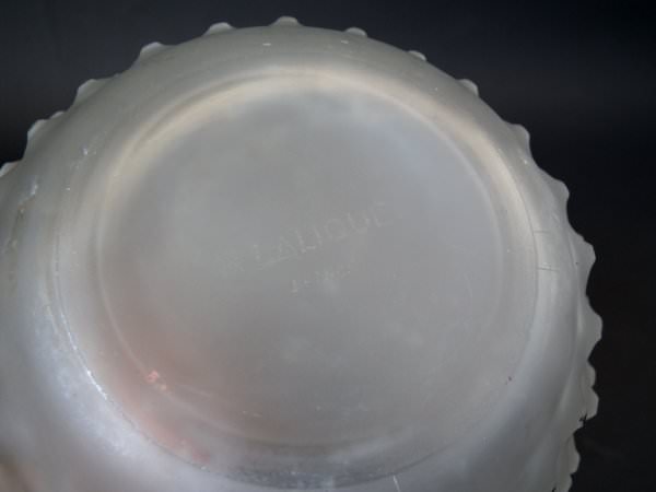 Stencilled makers mark, 'R LALIQUE FRANCE'. European Hallmarks to the silver rim.