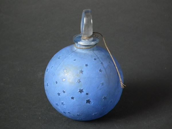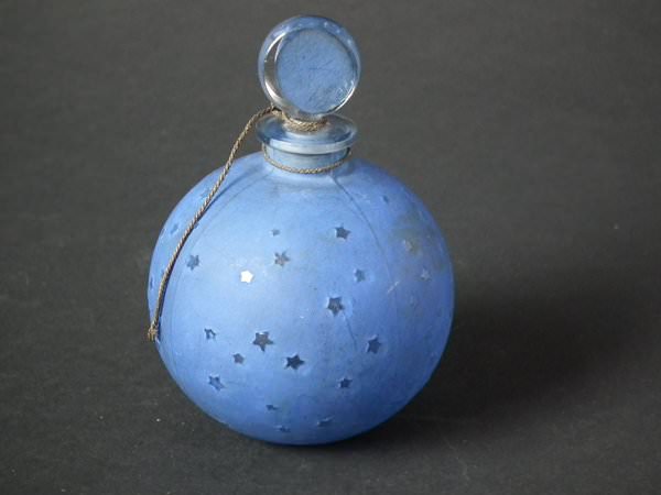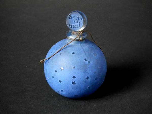 Introduced in 1924. Height: 10.5cm (4.13ins). Width: 7.5cm (2.95ins). Depth: 7.5cm (2.95ins).Renè Lalique Clear with blue staining Glass 'Dans La Nuit' Perfume bottle.