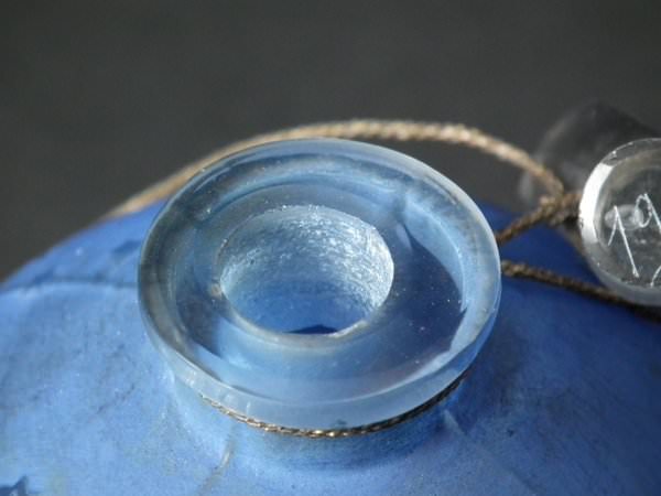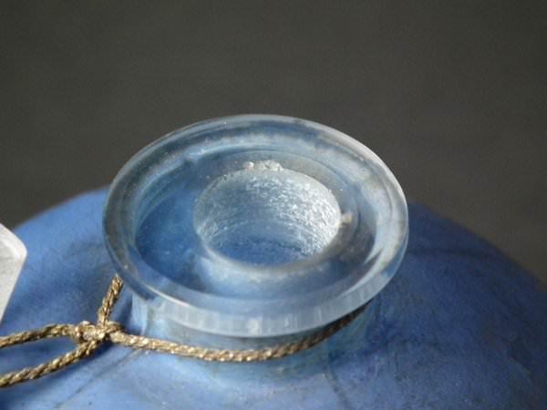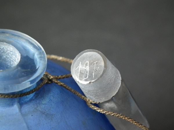 CONDITION: Good. Nibbles to inner rim of bottle and bottom rim of stopper.