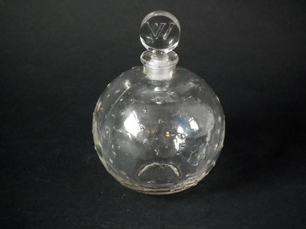 Introduced in 1950. Height: 14cm (5.51ins). Width: 10cm (3.94ins). Depth: 10cm (3.94ins). Lalique Clear Glass 'Worth 4 ' Perfume.