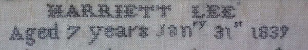 'HARRIETT LEE Aged 7 years Janry 31st 1839'.