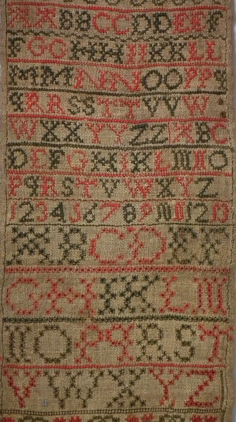 George III, dated 1804. 19.75 ins by 7.25ins wide. 1804 Scottish Alphabet sampler. Unframed.