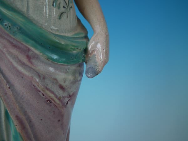 Slight wear to the base, her clothing and nose.