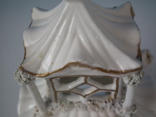 RESTORATION: Four top pillars reglued and join retouched.