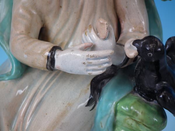 Some abrasion to front corners of the base and to his hands.