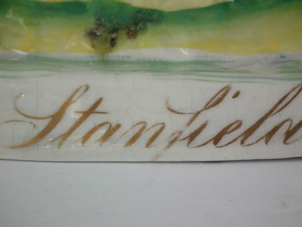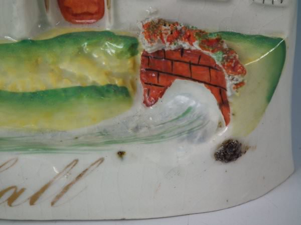 Staffordshire model which features Stanfield Hall, stood on a shaped base.