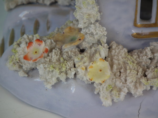 Dull gilt embellishment. Decorated mainly to the front. Opening to the reverse, roof and walls.
